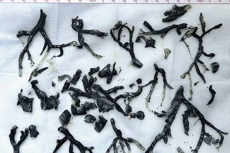 ডাক্তাররা রোগীর শ্বাসনালীর ভেতর থেকে যে “ব্রঙ্কিয়াল কাস্ট” (bronchial casts) বের করেছেন।