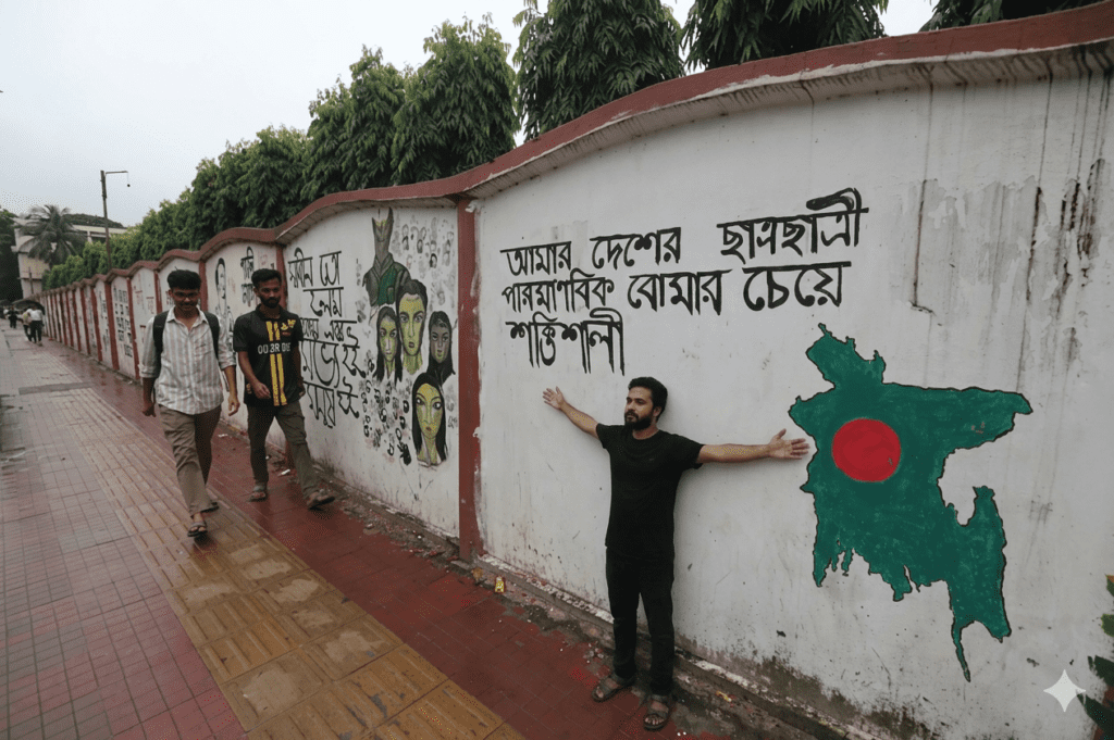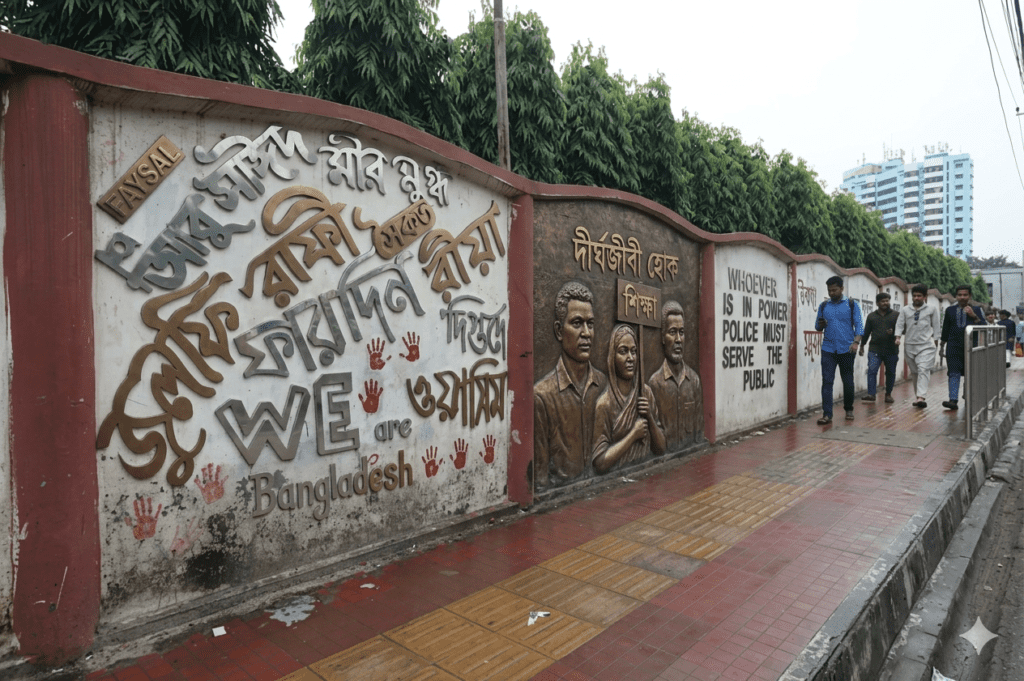 এক বছর আগে গণ-অভ্যুত্থানের সময় রাজধানীসহ দেশের নানা শহরের দেয়ালে ফুটে উঠেছিল ‘গ্রাফিতি’। এক শৈল্পিক প্রতিবাদ। তরুণ প্রজন্মের শিক্ষার্থীদের কাঁচা হাতের আঁকা ও হৃদয়ের গভীর অভিব্যক্তিময় সেই দেয়ালচিত্রে ছিল ফ্যাসিবাদের বিরুদ্ধে ধিক্কার। ছিল অসাম্প্রদায়িক অন্তর্ভুক্তিমূলক বাংলাদেশের স্বপ্ন। সেই গ্রাফিতিগুলো এখনো আছে। তবে তা অনেকটাই বিবর্ণ, ধুলো পড়া। গত রবি ও সোমবার ঢাকার বিভিন্ন এলাকা থেকে গ্রাফিতিগুলোর ছবি তোলা হয়েছে।